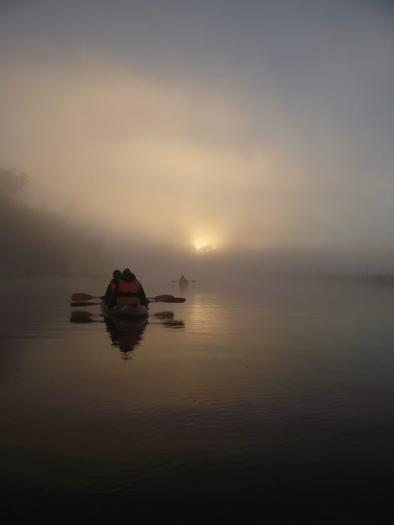 Remada suave entre humedales y bosque sumergido; aves, silencio y amanecer entre esteros.